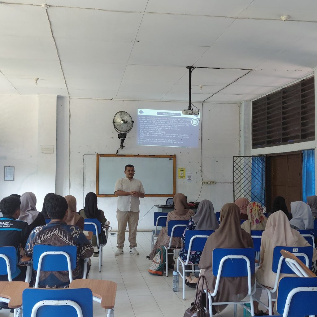 Program Studi Pendidikan Kimia FKIP UNIB menghadirkan 4 praktisi untuk mengajar mata kuliah pada Semester Ganjil 2025/2026. Pengajaran yang dilakukan oleh praktisi ini dilakukan secara daring dan ada praktisi yang datang langsung ke kelas. Kegiatan Praktisi mengajar ini dilakukan sebanyak 4 (empat) kali pertemuan. Adapun keempat praktisi tersebut adalah: